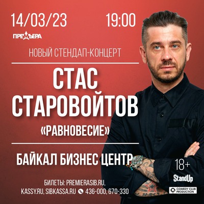 Новый стендап-концерт Стаса Старовойтова «Равновесие» — обо всём этом. Как балансировать в неустойчивом мире, имея одну точку опоры — себя самого.