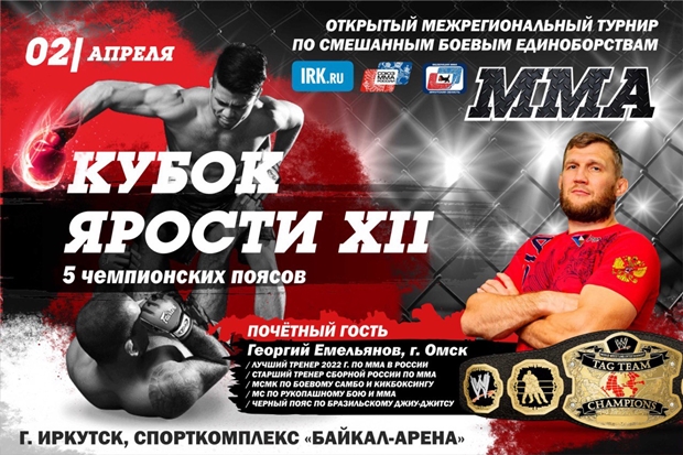 2 апреля 2023 года в спорткомплексе «Байкал-Арена» пройдёт ежегодный межрегиональный турнир по смешанным боевым единоборствам ММА «Кубок ярости XII».