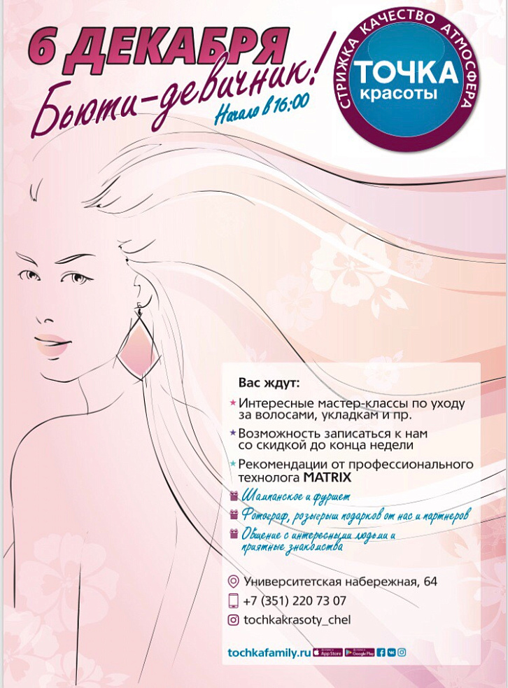 -возможность записаться в салон "Точка красоты" со скидкой до конца недели