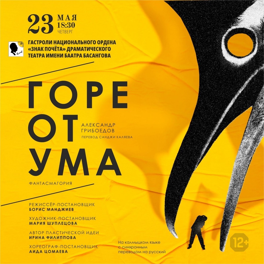 23 мая на сцене Чувашского драматического театра состоится показ фантасмагории по комедии Александра Грибоедова «Горе от ума» в исполнении артистов Национального драматического театра имени Баатра Басангова (г.Элиста, Калмыкия). Спектакль идет на калмыцком языке с синхронным переводом на русский.