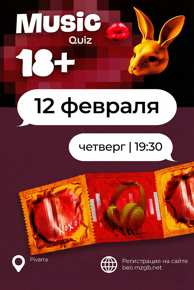Ночью точно будут наказаны все, кто не придёт на долгожданную и жаркую игру Music Quiz «18+»!
