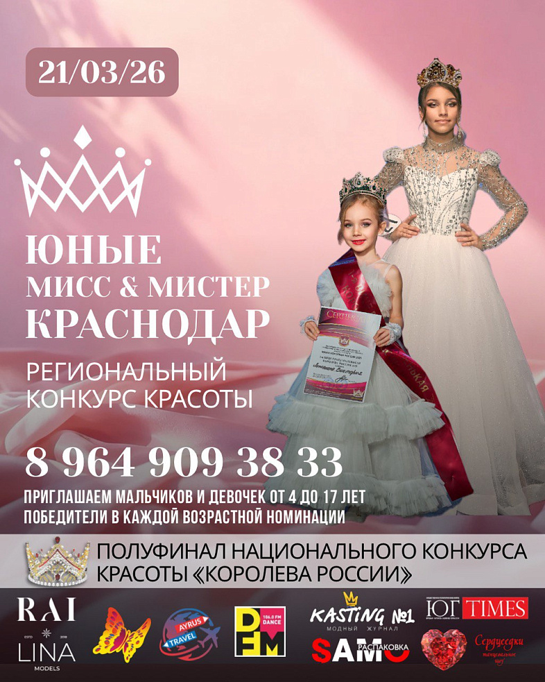 «МИНИ МИСС и МИСТЕР / ЮНЫЕ МИСС и МИСТЕР/ МИСС и МИССИС КРАСНОДАР 2026»
