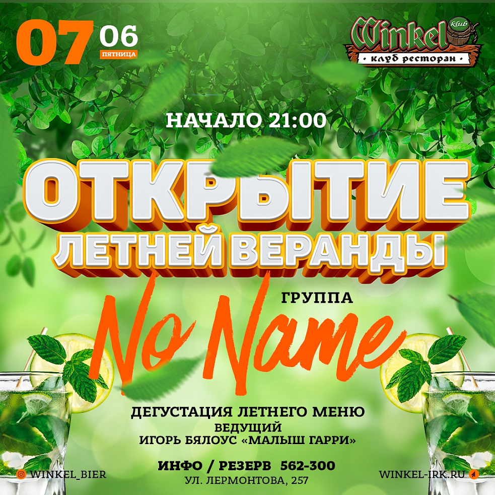 Winkel Klub приглашает на открытие обновленной Летней Веранды, 7 июня в пятницу!