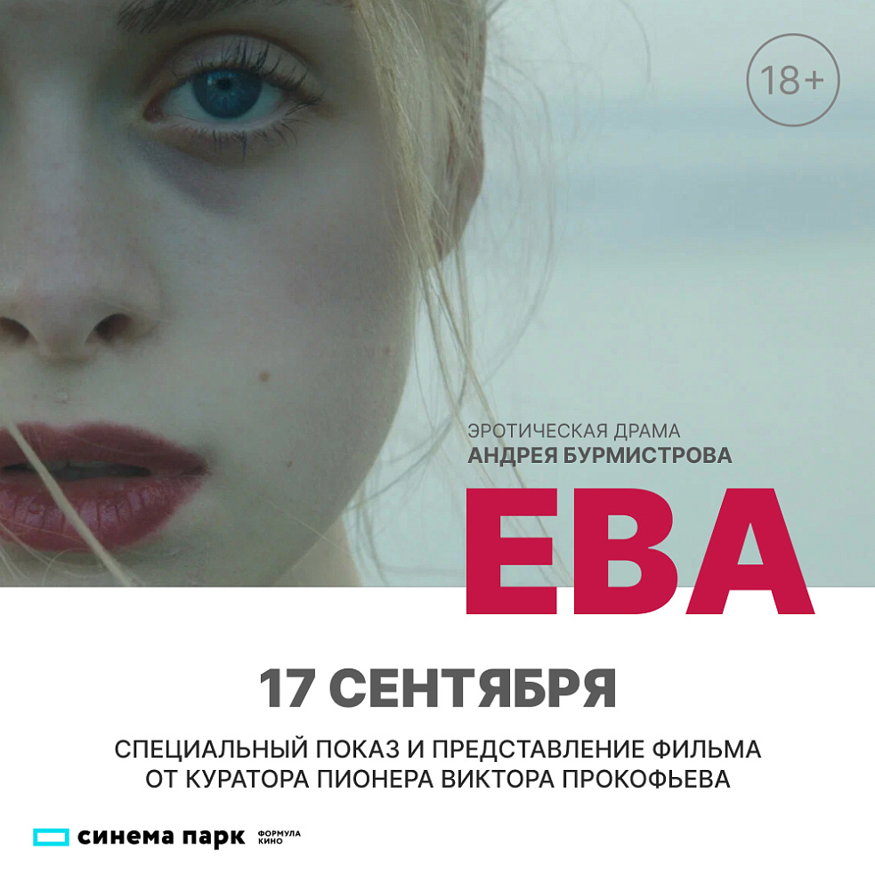 17 сентября кинотеатр «Синема Парк» приглашает на эксклюзивный показ эротической драмы «ЕВА». Фильм представит куратор Пионера Виктор Прокофьев.
