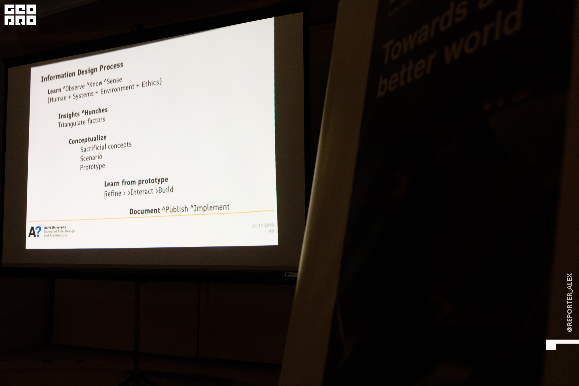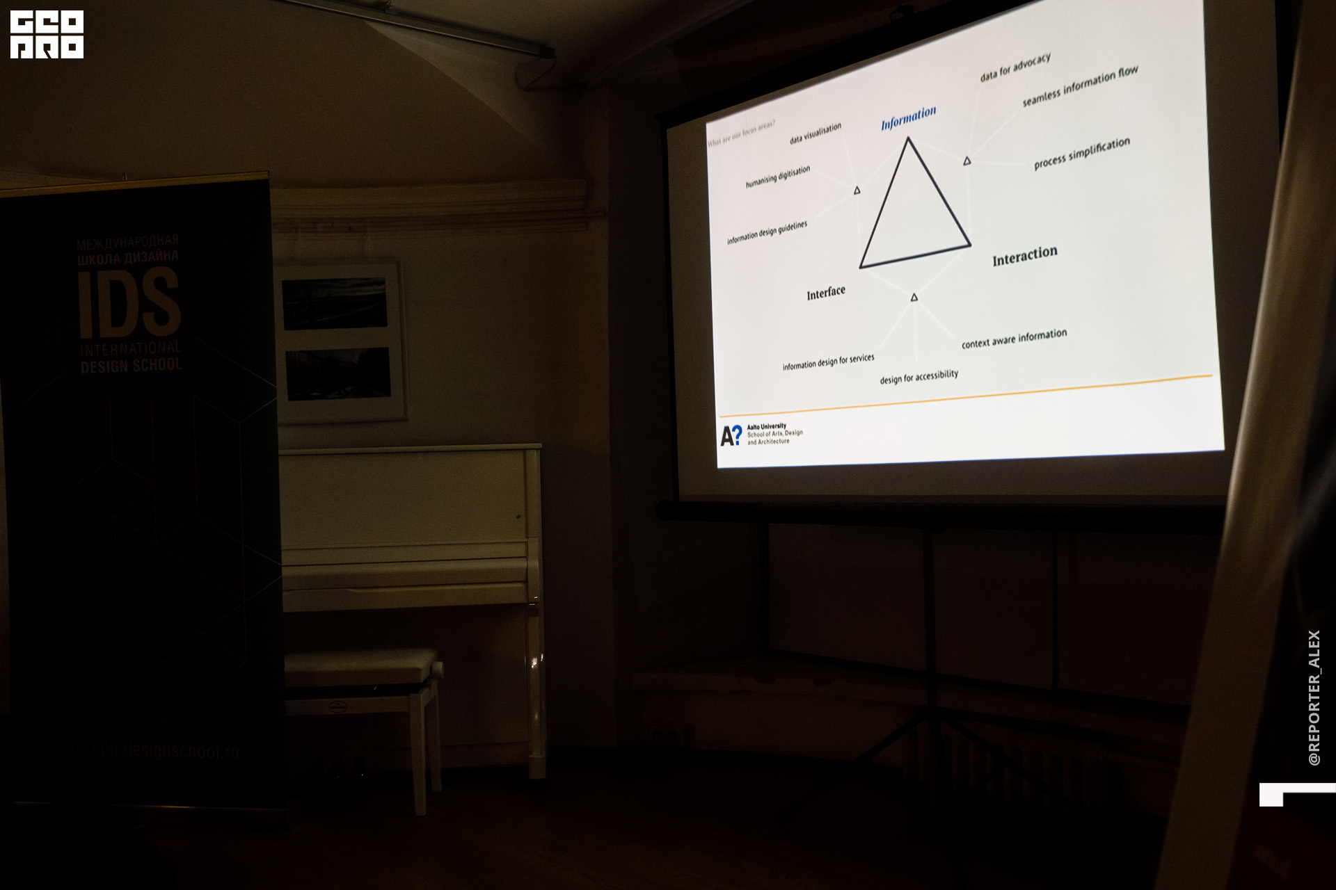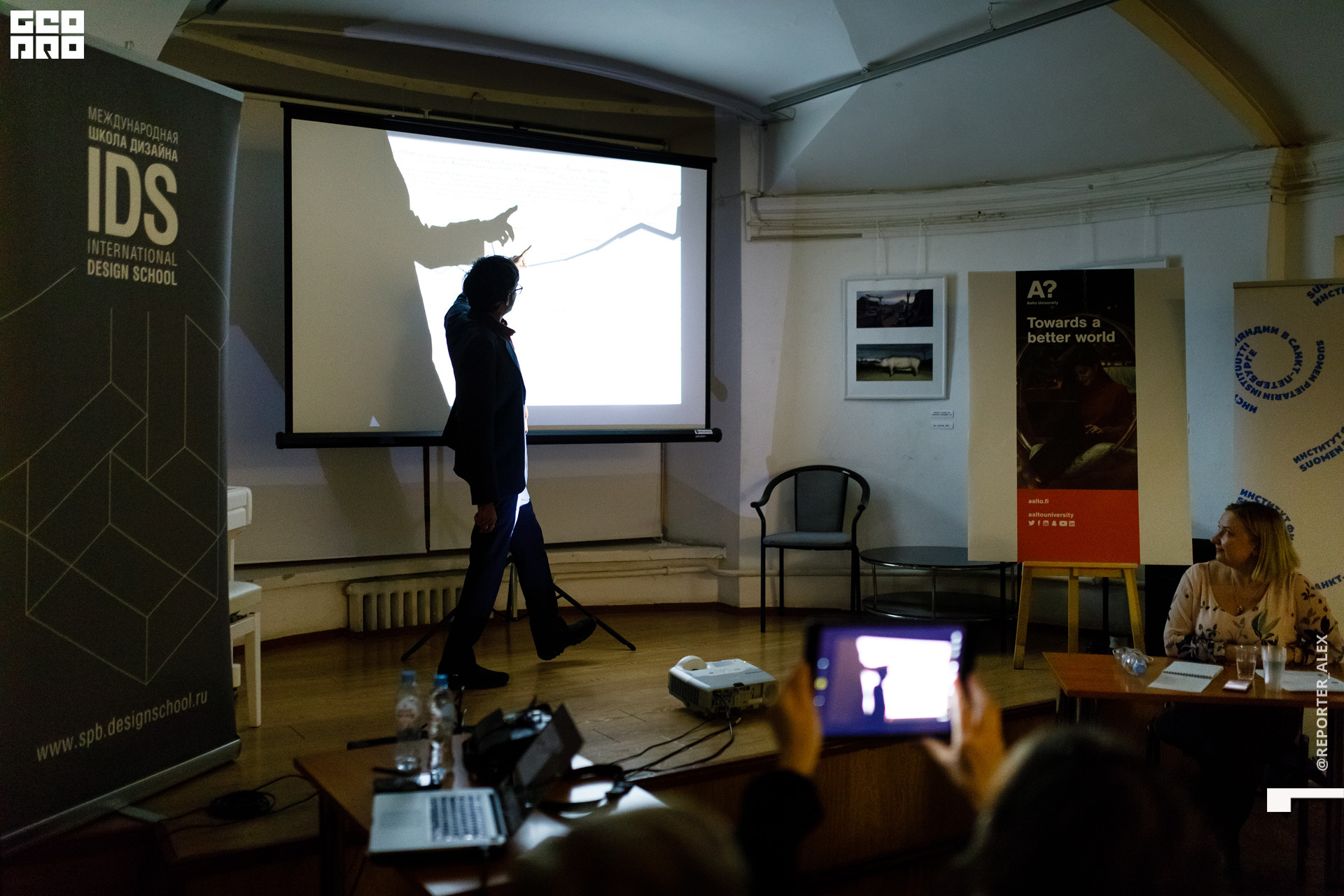 Актуальные темы графического, коммуникационного, информационного дизайна для студентов, выпускников, преподавателей IDS-Петербург и гостей Школы осветили коллеги из финского университета. Преподаватели Высшей школы искусств, дизайна и архитектуры Университета Аалто - художник и графический дизайнер Тарья Ниеминен, практикующий профессор визуального коммуникационного дизайна Рупеш Виас, преподаватель визуального коммуникационного дизайна, графический дизайнер Маркус Йоутсела, а также студенты и выпускники Университета делились собственными реализованными проектами и дизайн-кейсами. Мероприятие прошло в рамках деловой программы выставки IDS и Университета Аалто “Информационный обмен”.