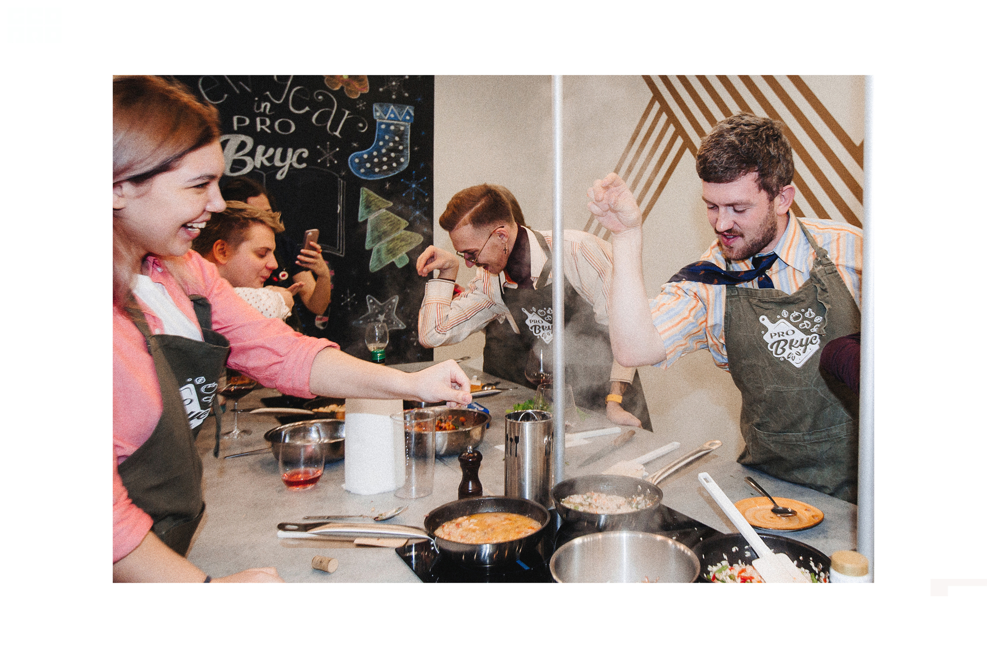 Корпоратив в январе? Да! Если это наша команда GEO.PRO. Мы решили провести время за приготовлением блюд испанской кухни в студии Pro вкус: тапасы, паэлья и десерт с грушей. Но всё было бы слишком просто, если бы не наши образы. Оденьтесь в стиле 70-х и дополнительное веселье вам гарантированно! Красавчики же, а?