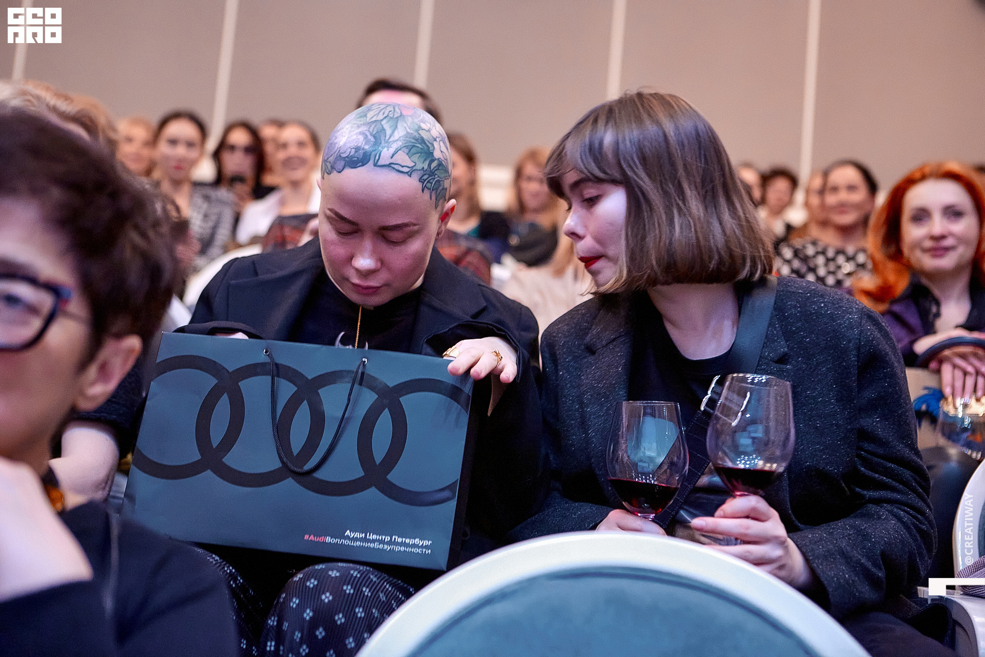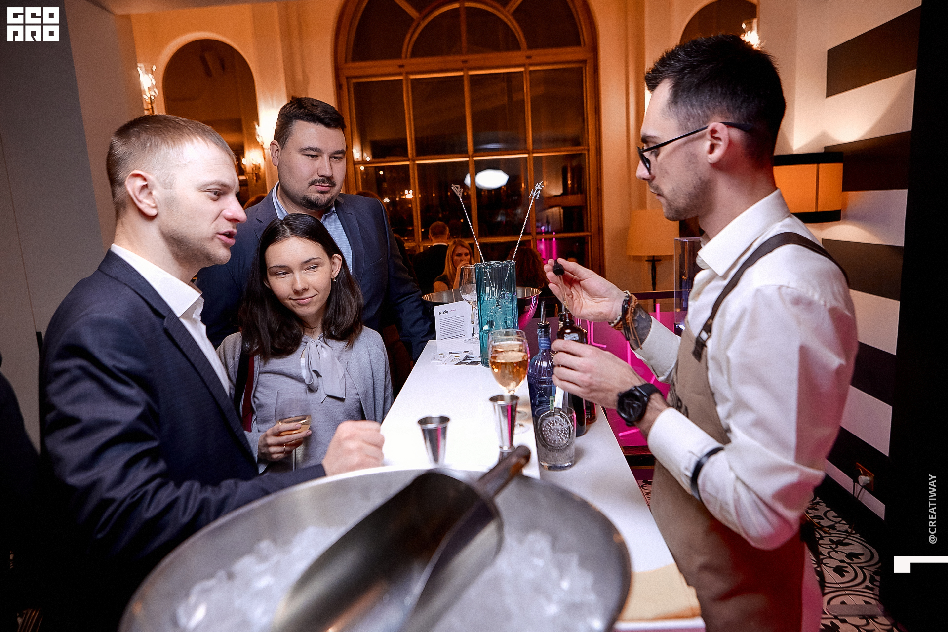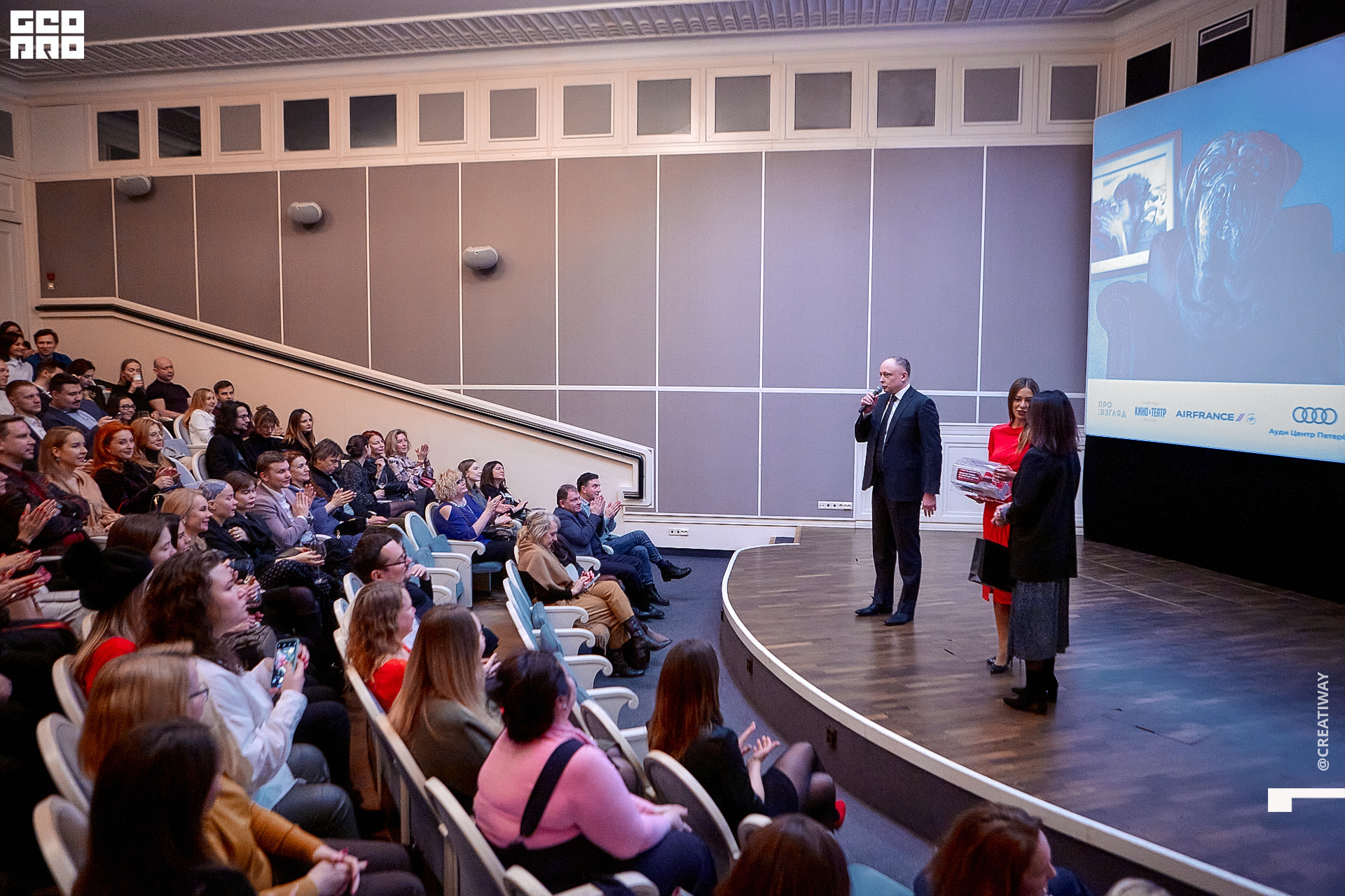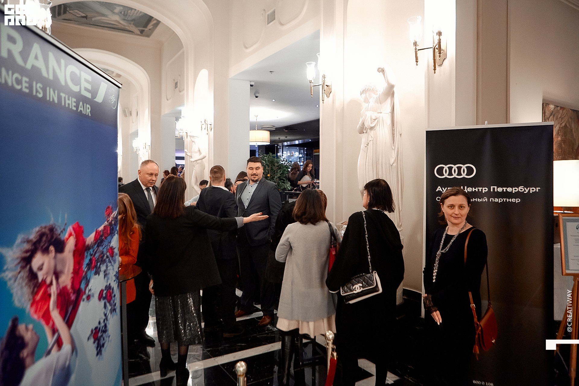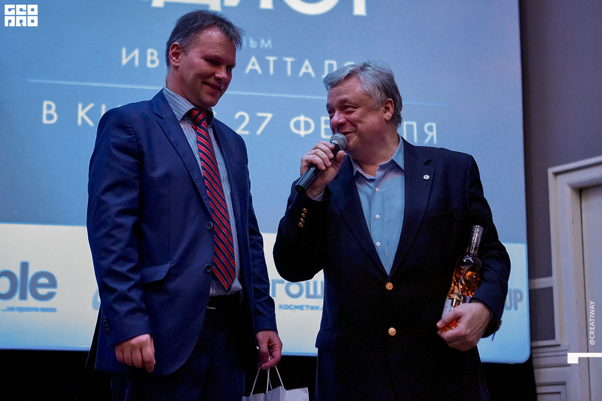 Специально для этого вечера компания Simple приготовила pop up коктейль "Моя собака идиот на основе белого вина, а ресторан Borsalino угощал лучшими закусками. благодаря кинопрокатной компании «Провзгляд» и поддержке авиакомпании AirFrance, Ауди Центра Петербург, сети магазинов парфюмерии и косметики РИВ ГОШ, клиники «ГрандМед», группе компаний Simple. В широкий прокат картина выйдет 27 февраля