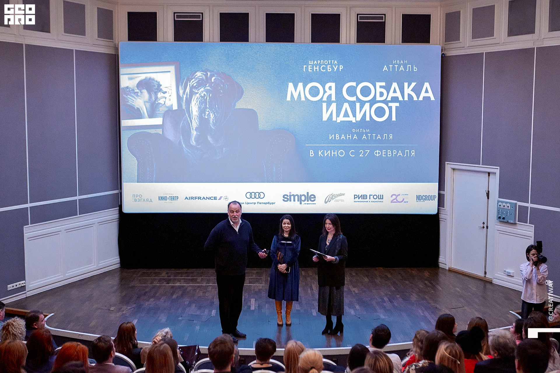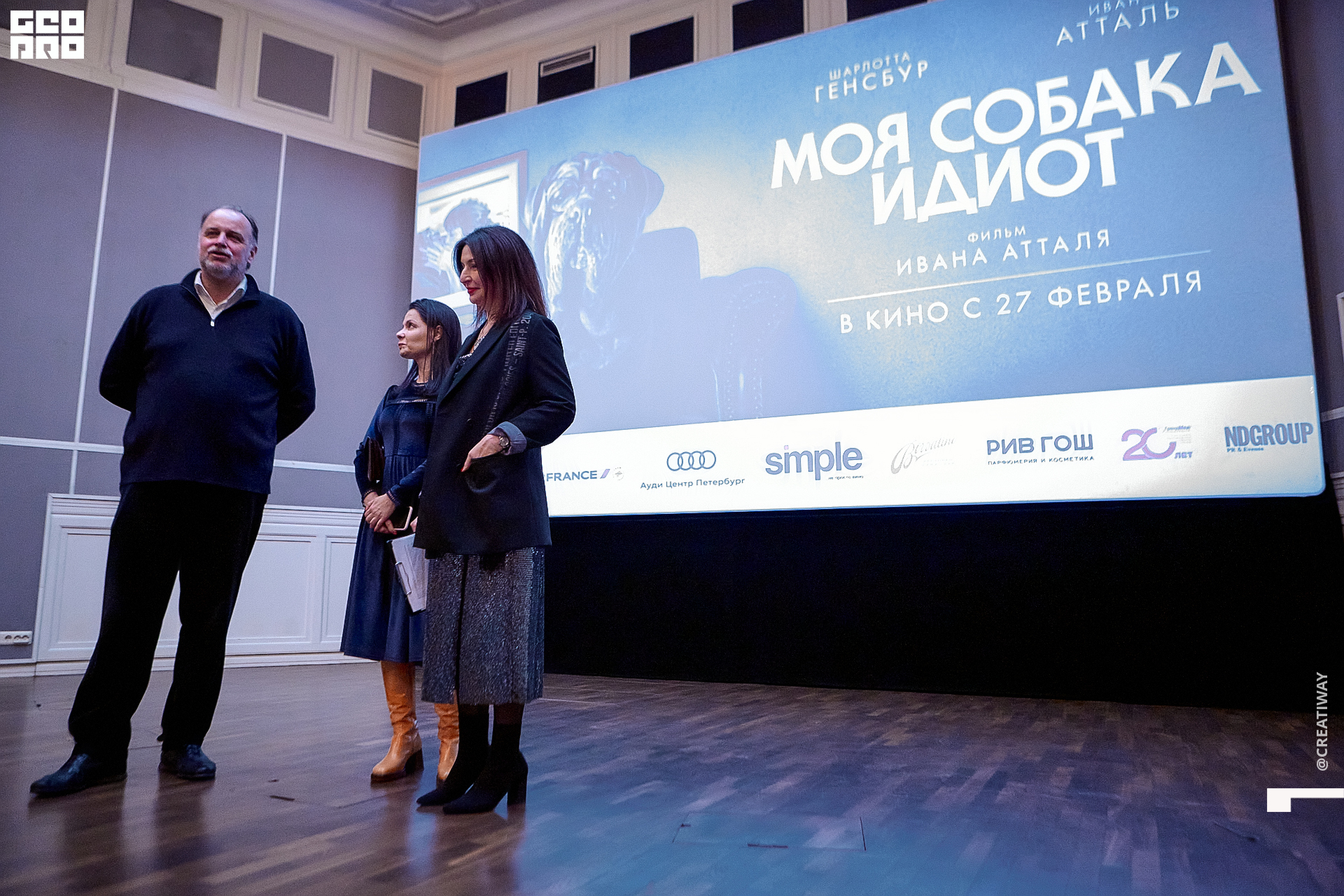 12 февраля в Санкт-Петербурге состоялся первый закрытый показ фильма «Моя собака Идиот». Премьера прошла в Angleterre Cinema Lounge. История о том, как нахальная бездомная собака меняет жизнь главных героев, которых сыграли Шарлотта Генсбур и ее муж Иван Атталь (он же режиссер фильма), очень тепло была встречена петербургскими зрителями.